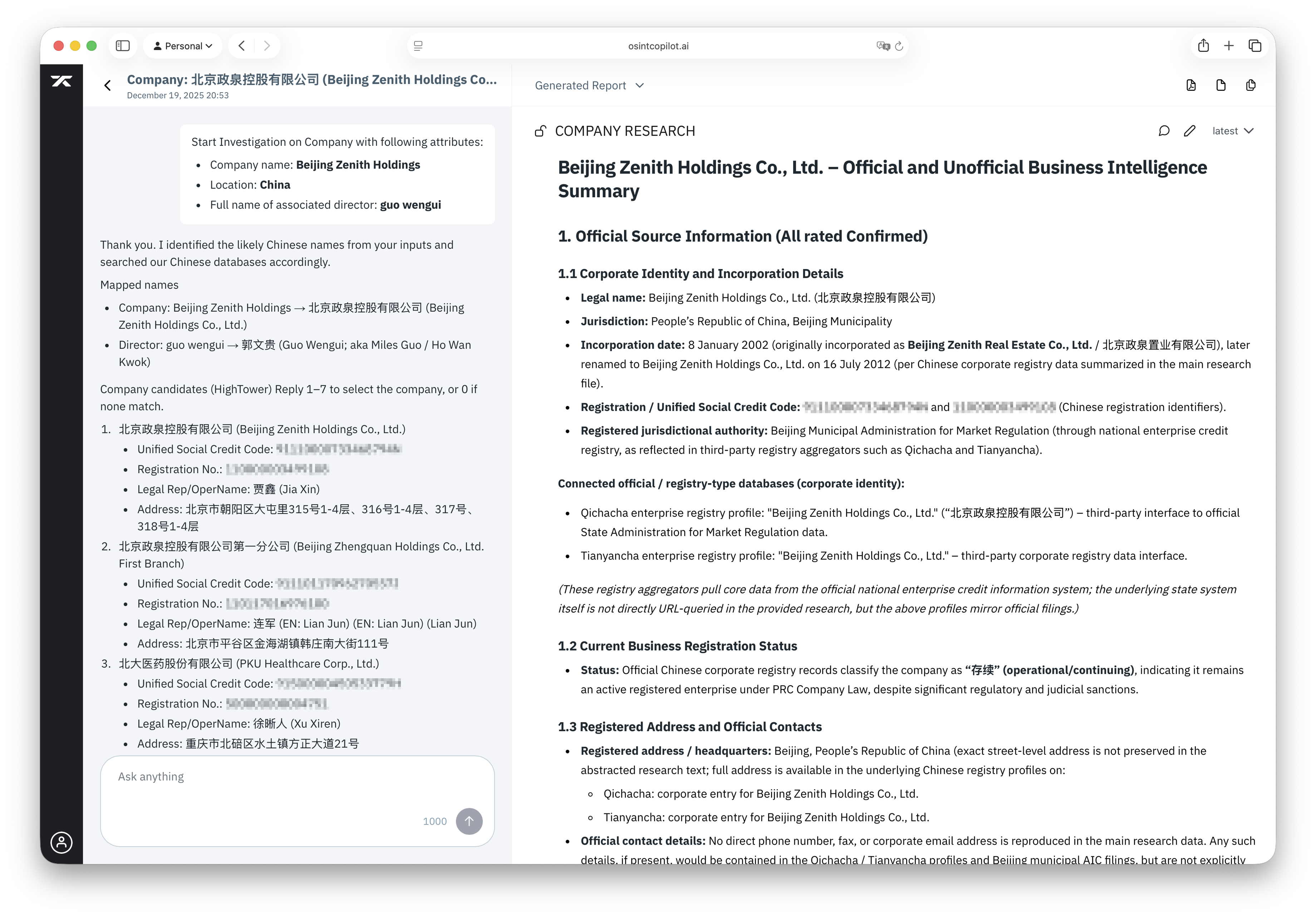 Tesari is a unique system that aggregates deep and hard-to-access data from restricted regions, especially China. With Tesari, investigating Chinese companies has become significantly easier.